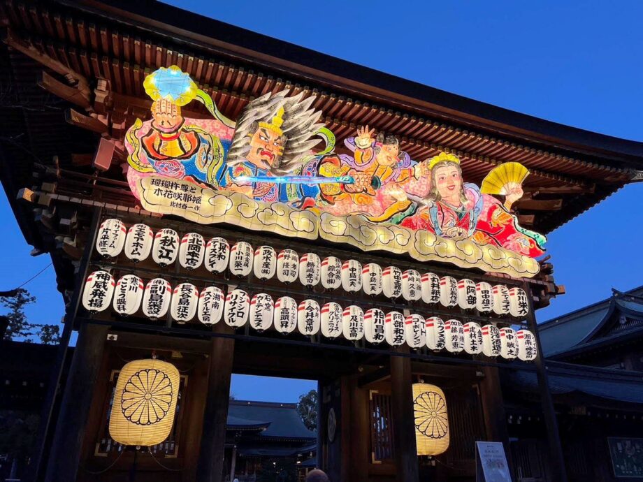 寒川神社の正月風物詩「迎春ねぶた」。青森のねぶた師が制作し、冬の風物詩として年末から新年にかけて神門に設置。参拝者を迎えるイベントです。ねぶた自体が厄除けの意味を持つ伝統的なお祭りで、神社の「八方除け」の力と合わさり、力強く新年をスタートさせる意味合いがあるのだとか。